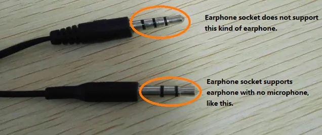 Hinweis: Wir empfehlen nur Kopfhörer oder Ohrbuds zu verwenden, die keine Mikrofonfunktionen haben. Es kann Probleme mit dem Audio (Ausgabe von Kopfhörern und Lautsprecher), wenn Sie Kopfhörer oder Kopfhörer mit einem Mikrofon verwenden.