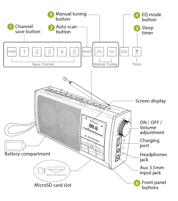 Abgesehen vom LCD-Bildschirm gibt es keine LED-Indikatoren auf dem Soundbyte T. Benutzen Sie den Bildschirm, um die Menüs zu navigieren.