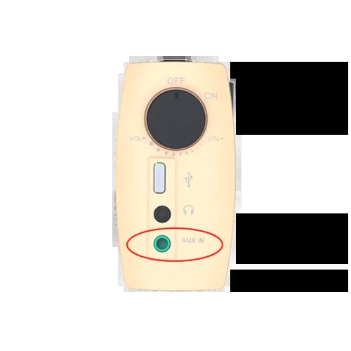 Der Soundbyte T kann als traditioneller „kabelgebundener Lautsprecher verwendet werden. Schließen Sie einfach ein Ende des 3,5mm AUX-Kabel an den Lautsprecher 3 an. mm Jack, und das andere Ende in den Audio-Ausgabe-Port des Geräts, von dem Sie hören möchten. Schalten Sie den Soundbyte T ein und schalten Sie die Lautstärke nach oben ein, um Audio durch den Lautsprecher zu hören.