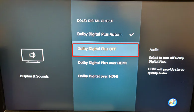 Schritt 5:Wählen Sie "Dolby Digital Plus OFF"