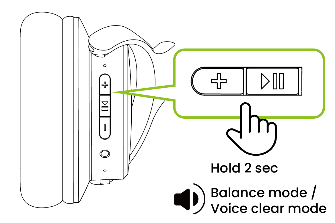 • Premere e tenere premuti sia il pulsante ⏯ che il pulsante + sul padiglione destro delle cuffie fino a quando non si sente il messaggio "Modalità Bilanciata." La modalità EQ verrà salvata e non si ripristinerà quando si spegneranno e riaccenderanno le cuffie.